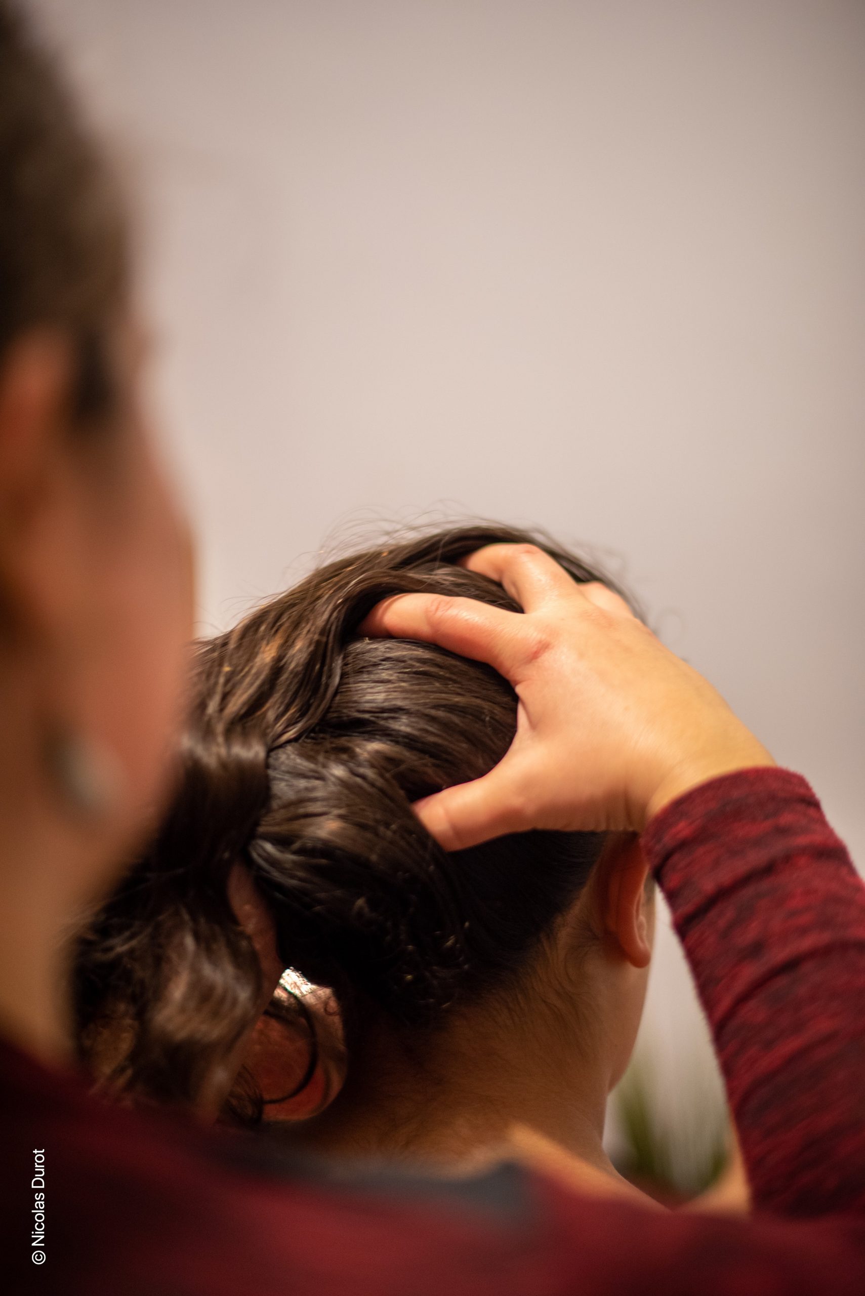 Le crâne, la nuque, les trapèzes, sont des zones privilégiées pour relâcher la tension accumulée depuis parfois des mois.